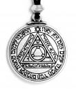 Our Planetary Talismans are found in the ancient manuscript “The Key of Solomon The King” and actualized by Pepi. They are cast in Lead-free, kid safe, "Hallmark" brand Pewter. Copr 1994. The pendant is double sided and the pendant size is large at almost 1.5 inches.